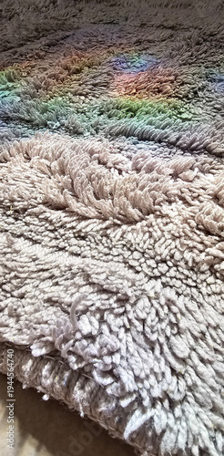 Soft textured rug surface with fluffy fibers and pastel colors