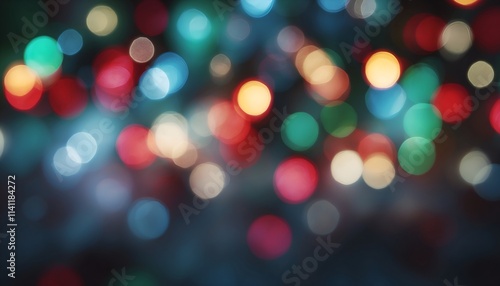 Softly blurred colorful Christmas lights in red, yellow, blue, green , shimmering against a abstract bokeh effect background, magical festive feel
