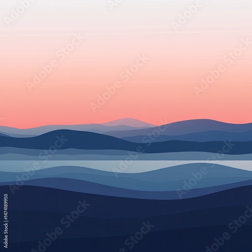 landscape, mountain, hill, vale, sunrise, sunset, nature, horizon, colours, gradient, layer, sky, peace, calm, serenity, beauty, quiet, view, travel, vacation, scenic, dreamy, peaceful, pastel, minimalism, abstract, digital, art, illustration, drawing, still, silhouette, blue, pink, orange, calmness, relaxation, imagination, minimalist, color palette, layered, smooth, natural, texture, elevated, perspective, background