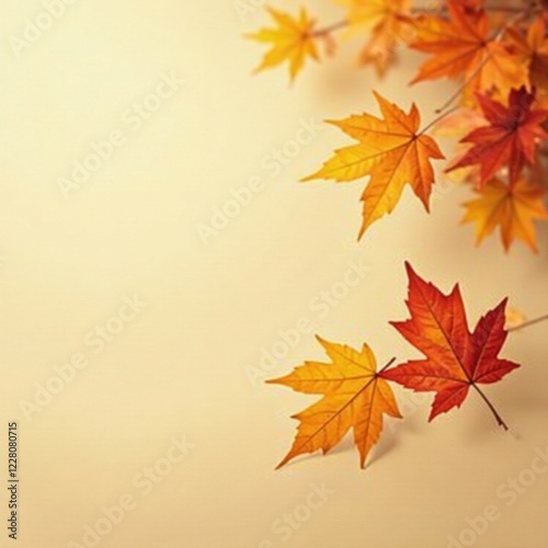Softly falling autumn leaves on a beige background, serene, leaf, beige