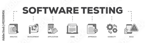 Software testing icon infographic illustration concept with icon of bugs, code, usability, approach, application, development, analysis icon live stroke and easy to edit