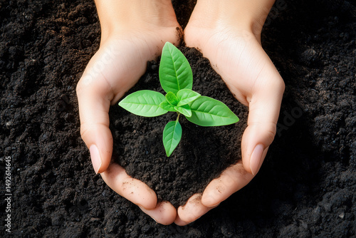 Soil and seedling cradled in warm hands