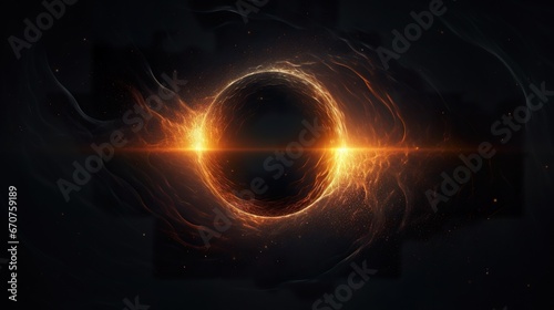 solar eclipse disk on black night sky, dark background with black hole wormhole
