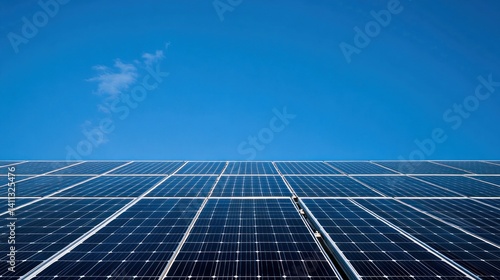 Solar panels against a vibrant blue sky