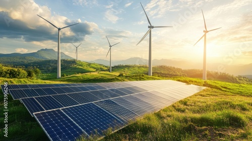 electricity, technology, environment, turbine, solar panel, wind power, generator, horizontal, wind, windmill, social issue, environmental conservation, nature, sky, wind turbine, concept, photo, sunlight, industry, sun, power supply, alternative, futuristic, no people, panel, power, recycling, renewable, solar, us, color image, ecology, energy, business, illustration, propeller, renewable energy, clean, equipment, leaf, outdoors, sunset