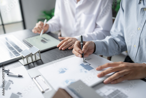 Solar panels green energy Business man working green eco friendly office business creative idea Planing Bio economy for business eco friendly professional Engineer sustainable electricity.