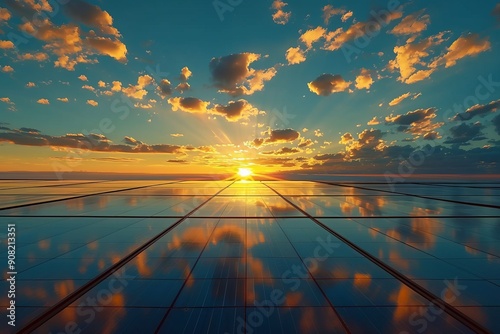 solar panels in the evening sun