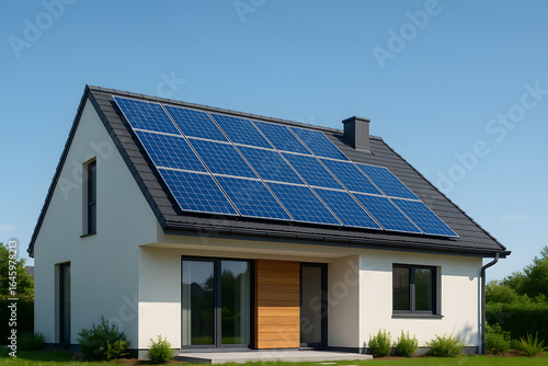 Solar Powered Home: A contemporary home is showcasing a commitment to sustainability with a sleek array of solar panels.