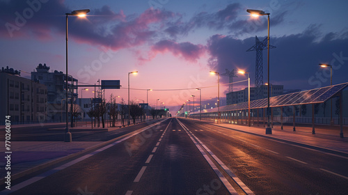 Solar-Powered Streetlights Illuminating Evening Streets