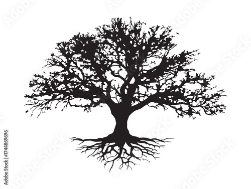 Solid Black Vector Art of an Angular Tree With Roots