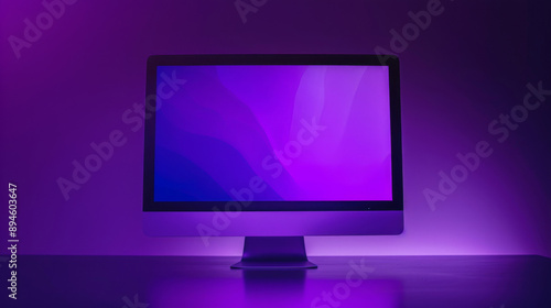 visual, glossy, lighting, monitor, lcd, render, desktop, realistic, workplace, glowing, illuminated, aesthetic, futuristic, vibrant, three-dimensional, creativity, screen, display, entertainment, information, purple, desk, minimalist, elegant, productivity, simple, sleek, gaming, wallpaper, workstation, digital artwork, widescreen, curved, blank screen, night, led, setup, computer, workspace, home office, portrait, evening, technology, modern, digital, black
