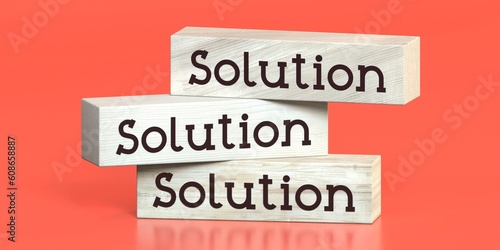 Solution - words on wooden blocks - 3D illustration