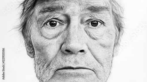 elderly, portrait, face, emotion, wrinkle, aged, human, seriousness, closeup, detail, expression, sorrowful, contemplation, art, black-and-white, realism, character, wisdom, loneliness, introspection, age, story, skin, feature, photo, authenticity, vulnerability, senior, man, eye, gaze, beard, hair, tiredness, background, light, shadow, texture, stare, stillness, melancholy, personality, line art