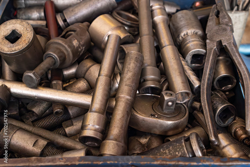 tool, hardware, engineering, equipment, fix, industrial, metal, object, horizontal, no people, oily, dirty