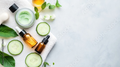 beautiful, flat, lay, soothing, facial, skincare, cream, cucumber, bottle, oil, green, essence, herbal, ingredient, natural, spa, wellness, relaxation, beauty, freshness, aromatherapy, leaf, clean, minimal, organic, treatment, refresh, health, cosmetic, dermatologist, therapy, rejuvenation, serum, moisture, vitamin, nourishment, care, glow, aesthetic, mindful, smooth, texture, harmony, environment, balance, naturalism, simplicity