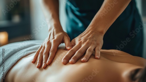 Soothing hands perform therapeutic massage on a person's back, focusing on alleviating stress and tension through gentle, precise techniques that promote relaxation and well-being.