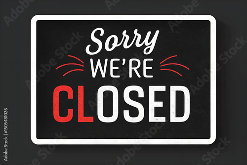 closed, signs, sorry, black, background, design, hanging, white, rectangular, red, text, bold, business, shop, notice, announcement, modern, graphic, art, decor, door, window, retail, message, typography, colours, contrast, style, professional, signage, temporary, closure, communication, visual, creative, blackboard, simple, clean, centered, aesthetic, trendy, unique, hand-made, vintage
