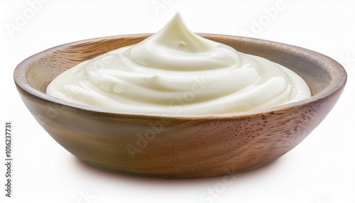 Sour cream or yogurt in ceramic bowl isolated on white background. ai generated