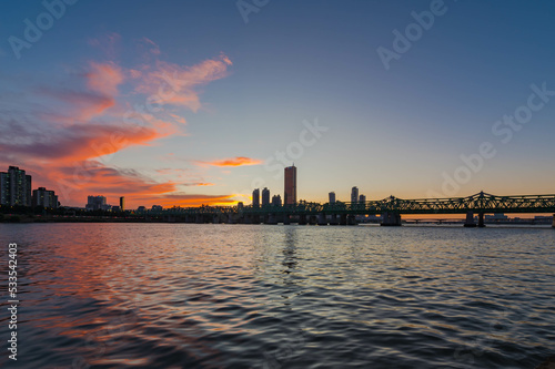 South Korea Seoul City during twiligth with 63 building