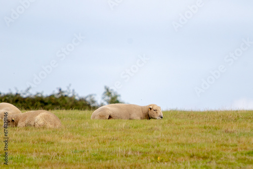 southdown sheep in the field, image shows a small herd of the sheep sleeping in a open field on a warm autumns day, taken october 2023