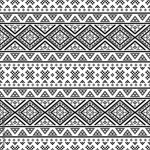 Southwest Native seamless pattern ethnic tribal Pixel Art Aztec geometric Navajo Native American fabric black and white design vector for textile print