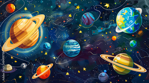 space, planet, earth, star, astronomy, galaxy, universe, moon, star, sun, solar, sky, science, cosmic, planet, system, blue, asteroid, night, solar system, illustration, light, earth, cosmos, nebula, globe, cartoon, neptune, pluto, mercury, saturn, uranus, background, blue skies