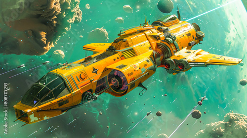 Space ship flying in the space , sci-fi fiction book cover