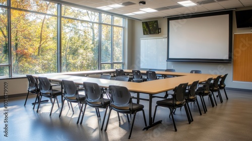 classroom, chair, natural light, window, learning, education, space, bright, modern, interior, collaborative, meeting room, training, presentation, facility, board, decor, environment, design, wall, equipment, technology, organisation, atmosphere, open space, comfort, professional, session, workshop, resource, productivity, teamwork, community, studio, generative, ai, office, table, business, work