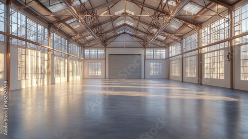 warehouse, industrial, interior, space, open, large, empty, modern, bright, sunlight, concrete, floor, metal, beam, window, high, ceiling, door, daylight, design, commercial, property, rental, empty space, clean, wide, brightly, lit, wide open, industrial building, factory, manufacturing, workshop, loft, showroom, unoccupied, vacant
