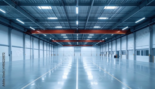 warehouse, interior, minimalist, ambient, lighting, crane, cool, empty, space, flooring, infrastructure, industrial, architecture, design, center, ceiling, reflections, shadow, modern, environment, storage, facility, structure, clean, bright, open, material, construction, overhead, expansive, geometry, vertical, line, symmetry, clear, perspective, utility, worked, aesthetic, simplicity, luminance, calmness