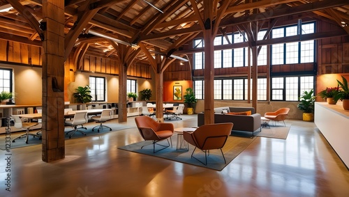 Spacious Open Concept Office in Converted Barn with Modern Furniture