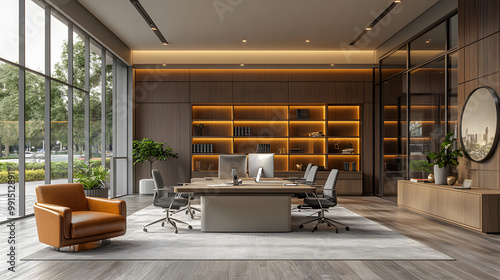 roomy, open, office, modern, furniture, collaborative, workspace, large, window, shared, desk, work, area, sleek, flexible, seating, natural, light, minimalist, decor, bright, design, ergonomic, workspace, lighting, layout, space, chair, option, wooden, accent, clean, line, stylish, retro, vibe, wood, material