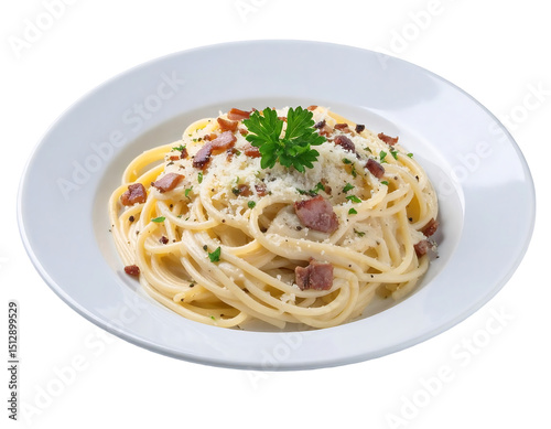 transparent, spaghetti, pasta, carbonara, food, dish, meal, italian, bacon, plate, white, garnish, parsley, pepper, creamy, delicious, close, up, background, culinary, cookery, eatery, eating, healthy, fresh, cooked, egg, cheese, noodle, texture, presentation, appetising, epicure, simple, classic, savoury, comfort, lunch, dinner, breakfast, ingredient, receipe, homemade, isolated, photo, studio