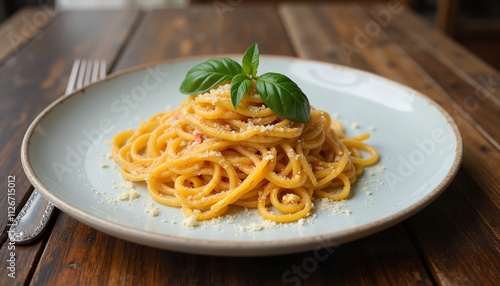 spaghetti, pasta, basil, food, italian, cookery, dish, plate, wooden table, meal, parmesan, garnish, lunch, dinner, epicure, fresh, homemade, savoury, mediterranean, culinary, dining, rustic, traditional, aromatic, simple, herb, receipe, comfort, sauce, noodle, yellow, plated, appetising, classic, vegetarian, delicious, serving, cooked, wholesome, chef, culinary arts, eatery, tableware, cosy, hearty, authentic, flavorful