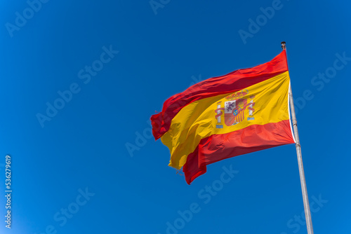 Spanish flag, symbol of patriotism held by the wind, red and yellow national symbol