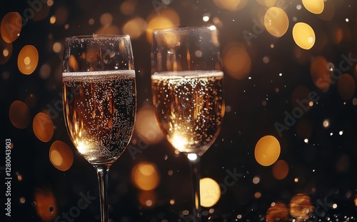 Sparkling Champagne Glasses with Bokeh Background and Glittering Effects for Celebratory Events and Festive Occasions