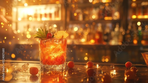 cocktail, drink, bar, night, warm, lighting, sparkling, garnish, ice, eatery, luxury, glasses, party, celebration, aperitif, cheer, elegant, sophisticated, nightlife, pub, drink, alcoholic, red, orange, fruit, lemon, berry, decoration, evening, blurred, background, cocktail, alcohol, hospitality, summer