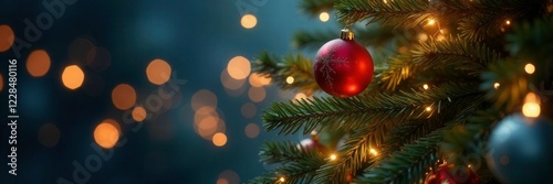 Sparkling fairy lights weave through Christmas tree branches with ornaments, ornaments, christmas