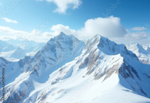 Sparkling Snow-Capped Peaks under Radiant Sunlight Illuminating Majestic Mountain Landscape