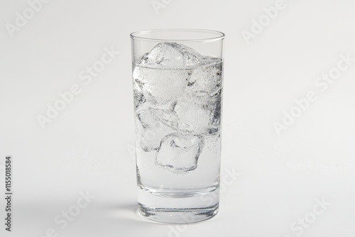 water, ice, glasses, drink, beverage, bubble, refreshment, cold, transparent, clear, liquid, fizz, sparkling, carbonated, cool, pure, clean, healthy, thirst, summer, winter, crystal, chill, fresh, delicious, hydratation, fluid, icy, cube, single, cylinder, container, vessel, surface, background, white, studio, photo, image, picture, still, life, object