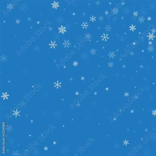 Sparse snowfall. Random scatter on blue background. Vector illustration.