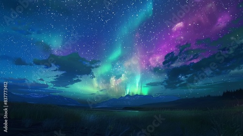 spectacle of the aurora borealis dancing across the night sky, painting the heavens with vibrant hues of green