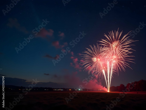 Spectacular Fireworks Display Illuminating the Night Sky with Vibrant Colors and Plenty of Space for Text Overlay Creating Festive Atmosphere