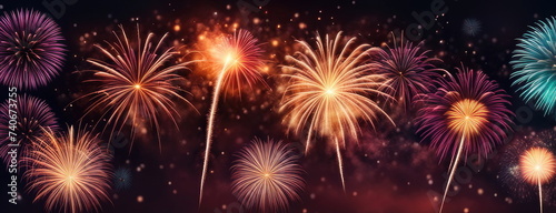 Spectacular Fireworks Display with Bokeh Lights Background