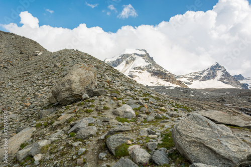 Spectacular mountain landscape with clouds starting to cover the sky.