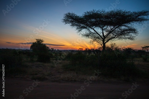 tanzania, serengeti, sunset, sunrise, dusk, dawn, africa, savanna, sky, light, ray, sunburst, silhouette, tree, acacia, nature, travel, scenic, outdoors, dramatic, serene, tranquil, peaceful, horizon, colours, twilight, bush, crepuscular, golden hour, natural beauty, travel destination, national park, natural world, evening light