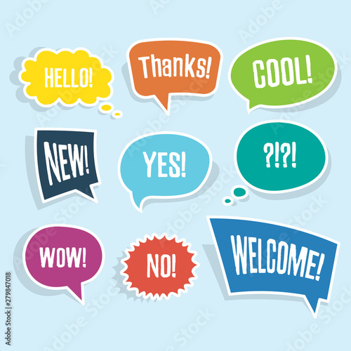 speech, bubble, bubble, vector, design, abstract, icon, talk, cartoon, set, message, colourful, colours, illustration, background, symbol, graphic, comic, signs, cloud, dialogue, communication, label, speak, art, chat, banner, isolated, text, sticker, discussion, yes, thank, hallo, wow, cool, no, new