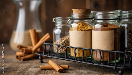 spice, jar, cinnamon, shelf, kitchen, herb, wooden, brown, cooking, baking, natural, aromatic, ingredient, home, food preparation, favor, seasoning, rustic, culinary, organic, home cooking, pantry, decoration, storage, condiment, herb garden, earthy, rich, fragrant, culinary arts, warmth, comforting, bricolage, vintage, allspice, turmeric, pepper, sweet, epicure, flavouring