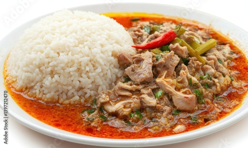 Spicy chicken curry with rice, Thai cuisine, delicious meal