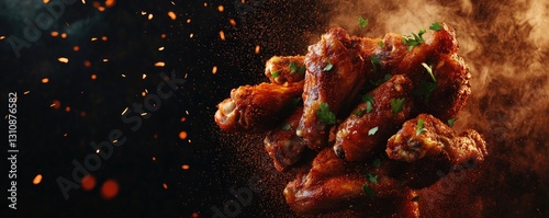 Spicy Chicken Wings in Mid-Air